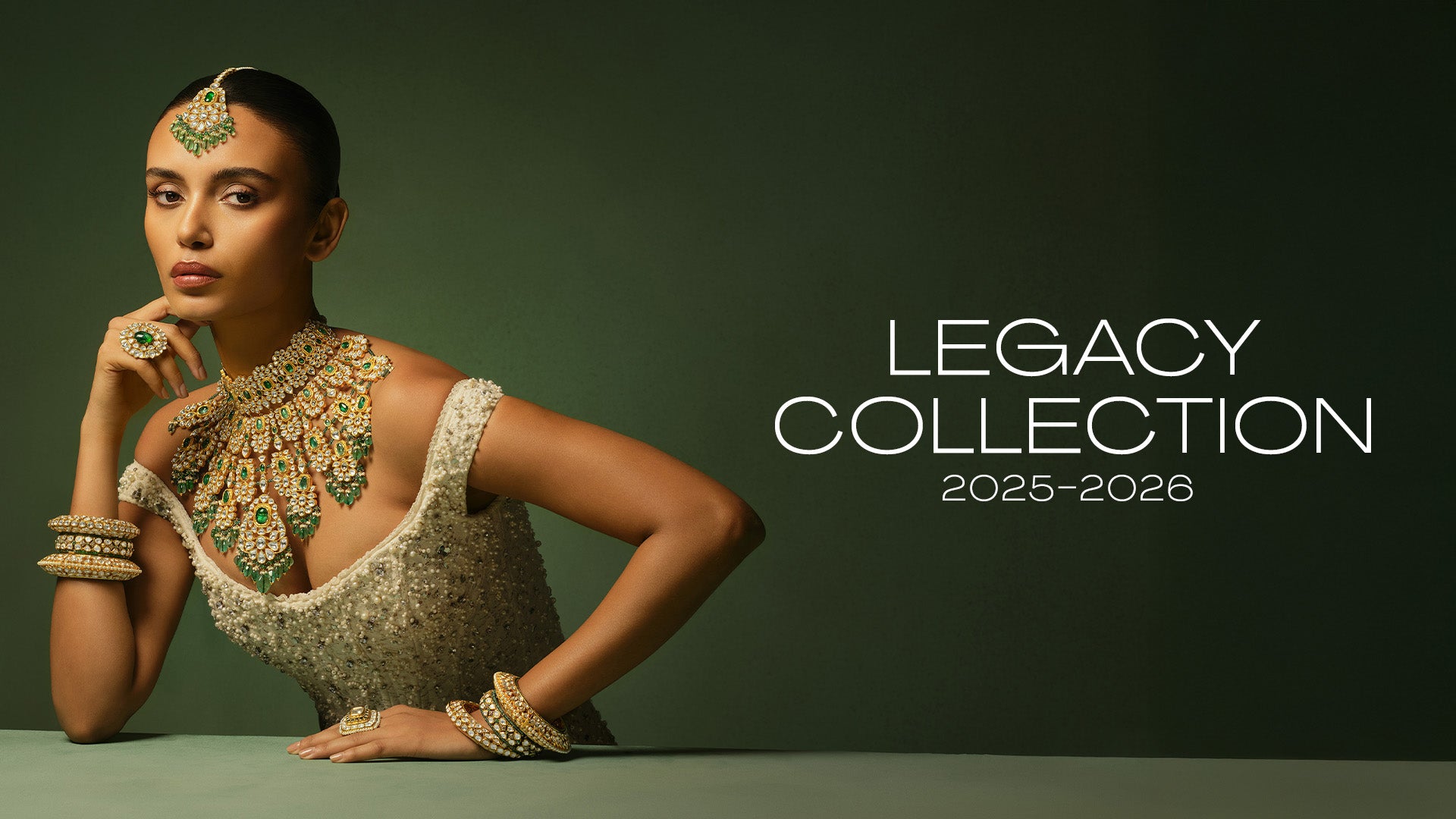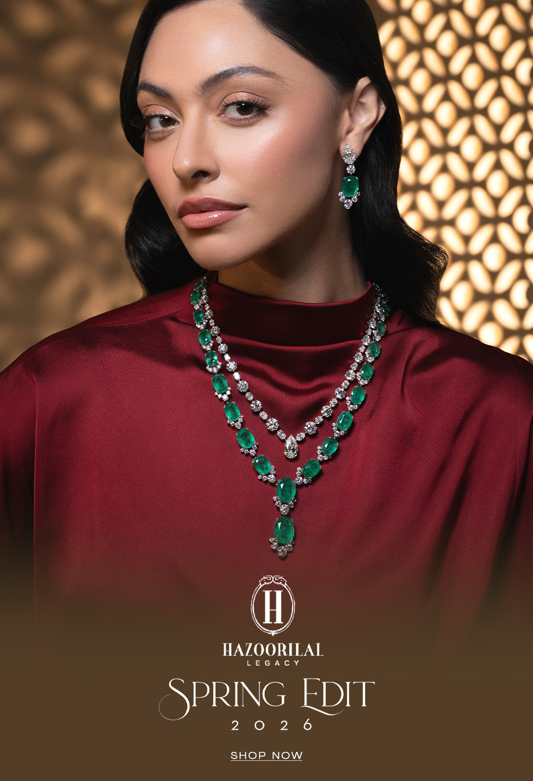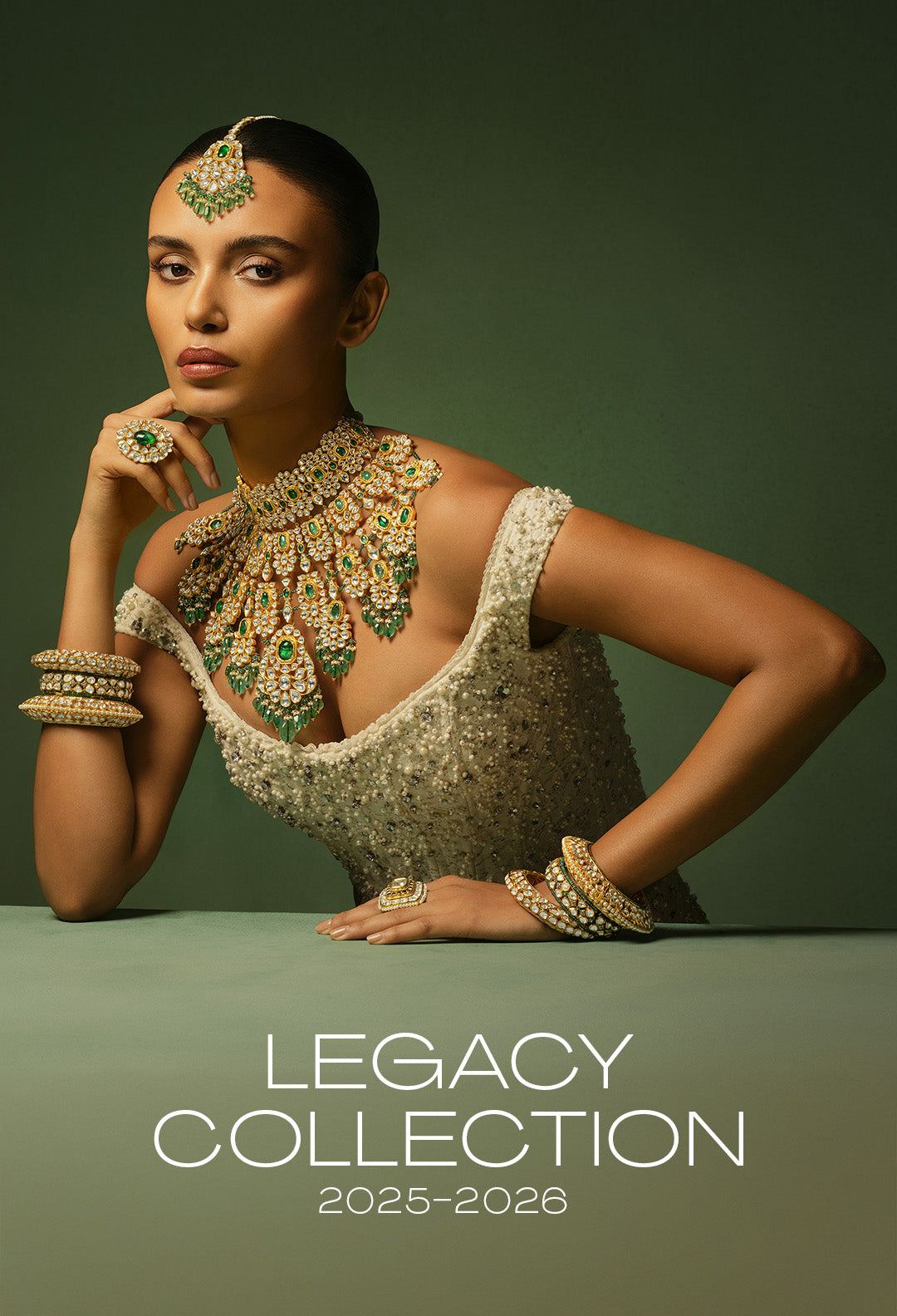 An elegant timeless portrait, rich in detail and grandeur, the Hazoorilal Legacy bride wearing jewellery