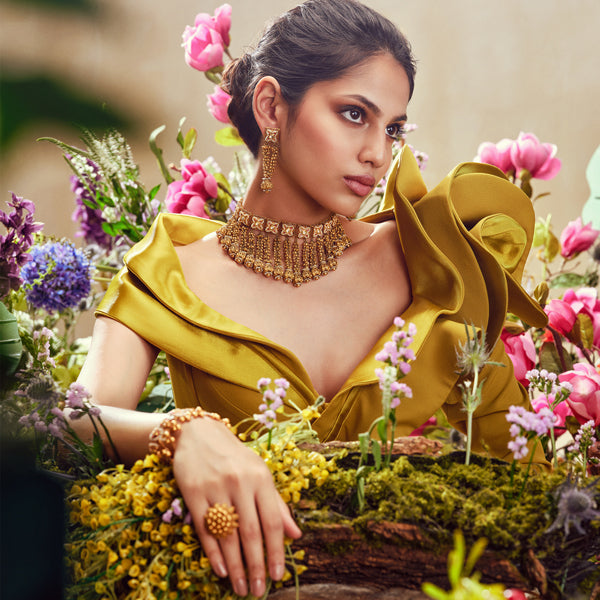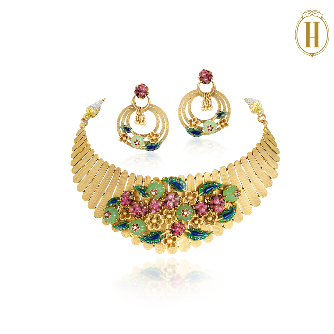 Since ancient times, Gold, a precious metal has always symbolised everlasting stature and is largely used as investment and/or gifting during joyous occasions. The rich heritage attached with the precious malleable metal lends itself to create impressive Indian gold jewellery designs in necklaces, earrings, bangles and other accessories. Fashion movement across the globe showcase a wide acceptance of contemporary forms and Hazoorilal Legacy’s gold jewellery collection boasts of many such breath taking concepts.