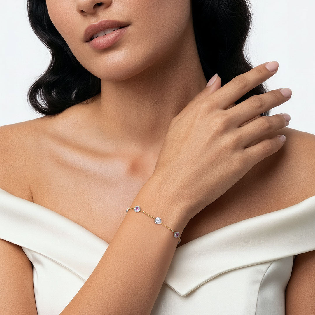 A cocktail of dainty diamonds and colored stones confluence with enamel work rendering an