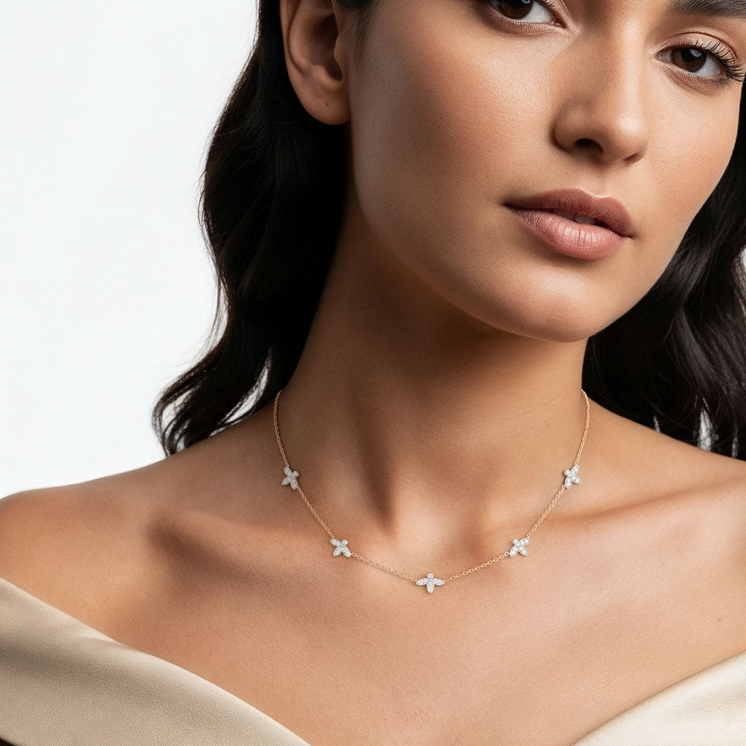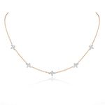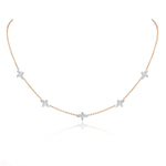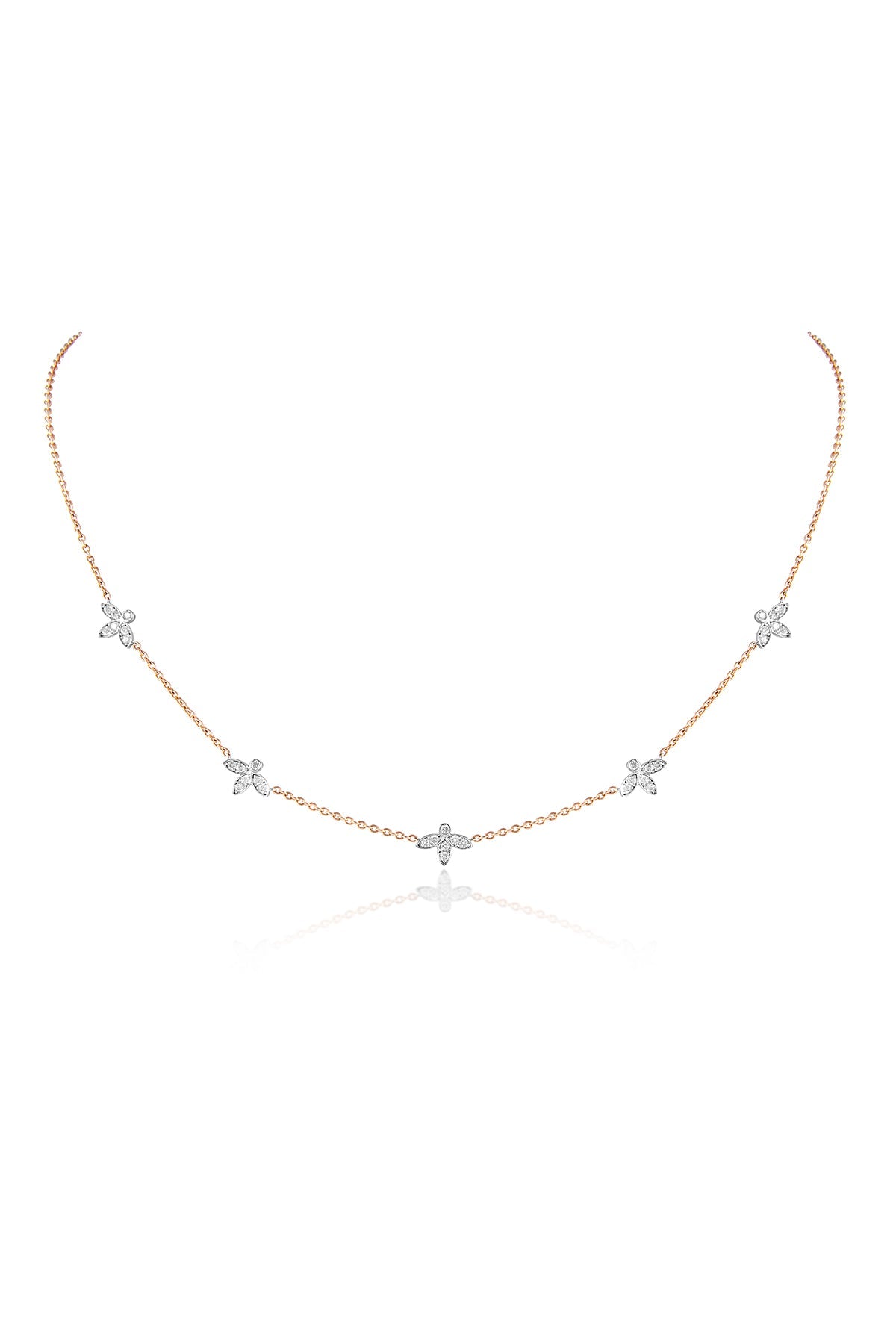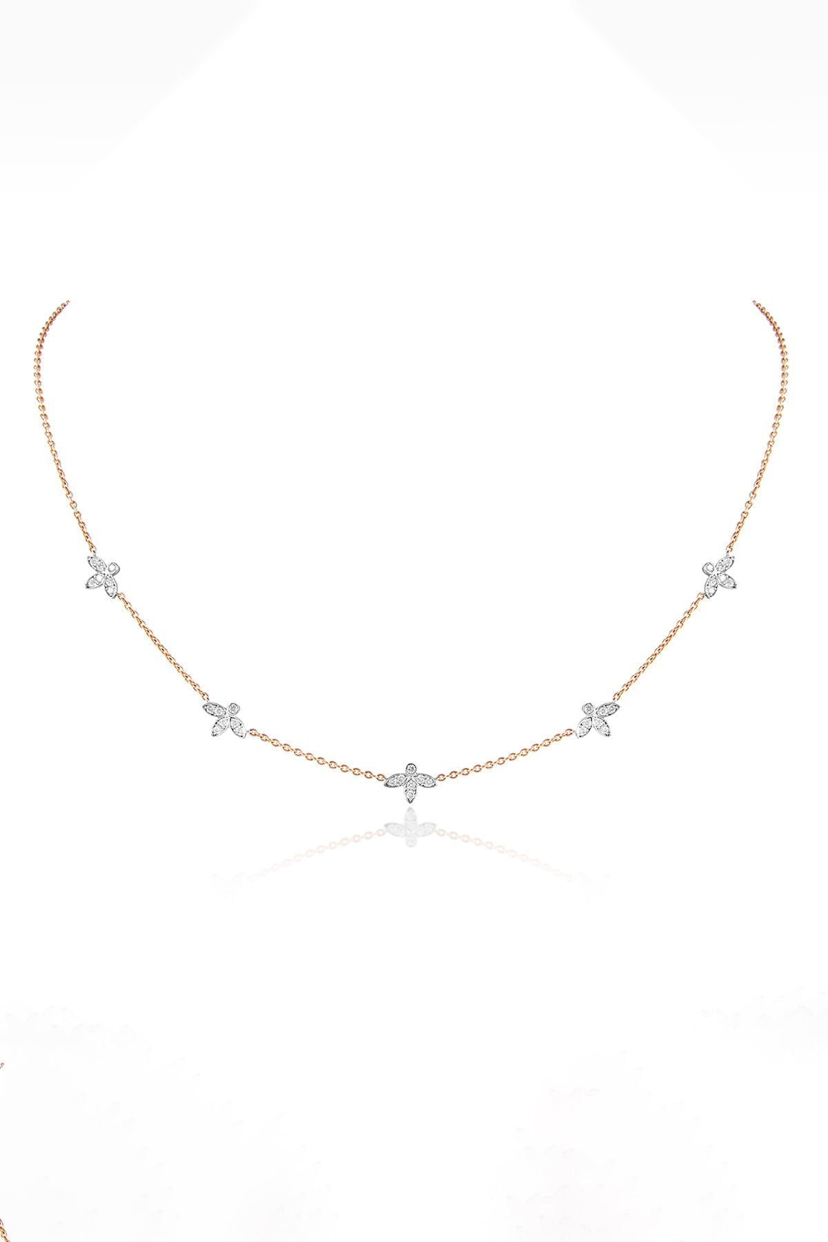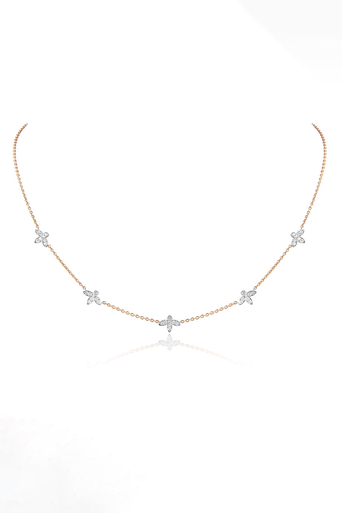 18 Kt yellow gold necklace with floral motifs highlighted by round brilliant-cut diamonds