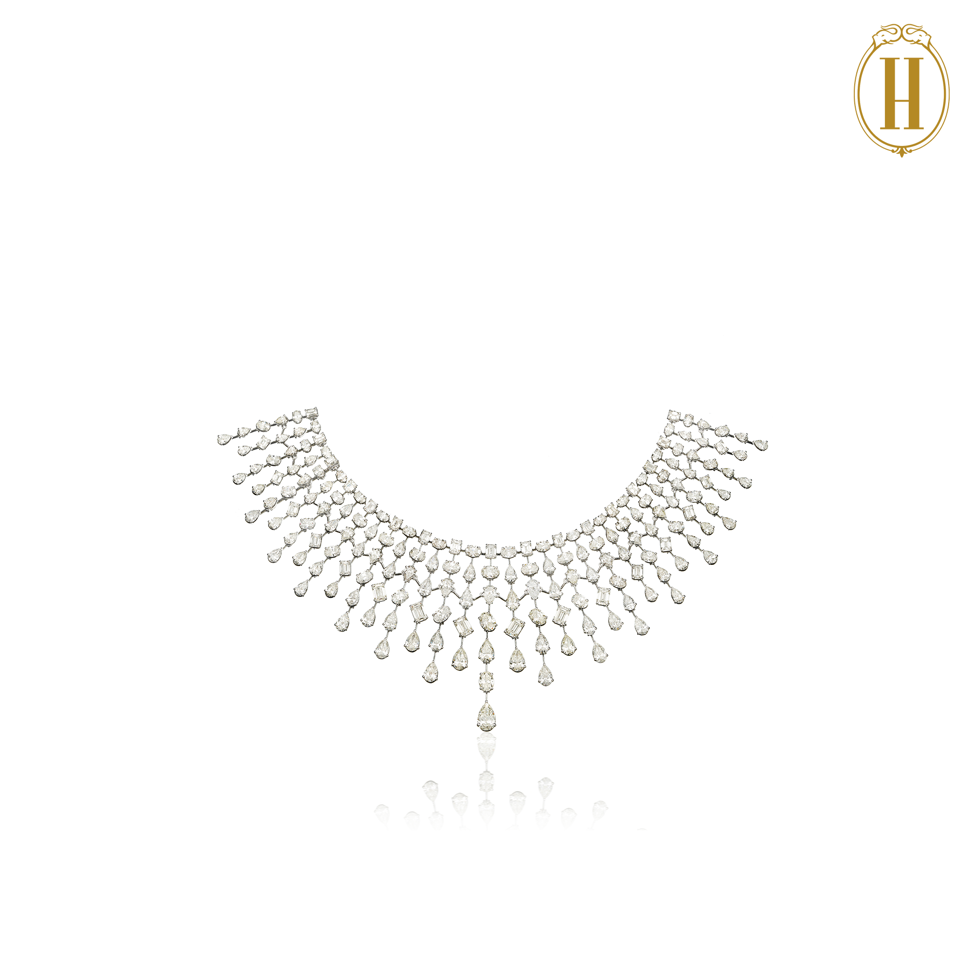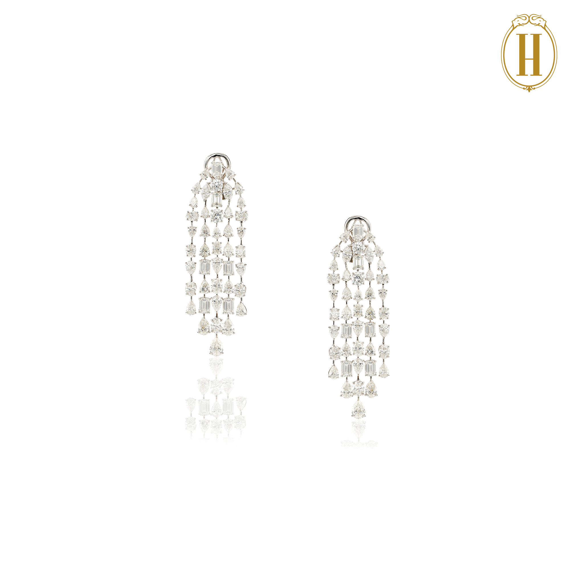 A graceful composition of brilliant-cut diamonds set in 18KT white gold.