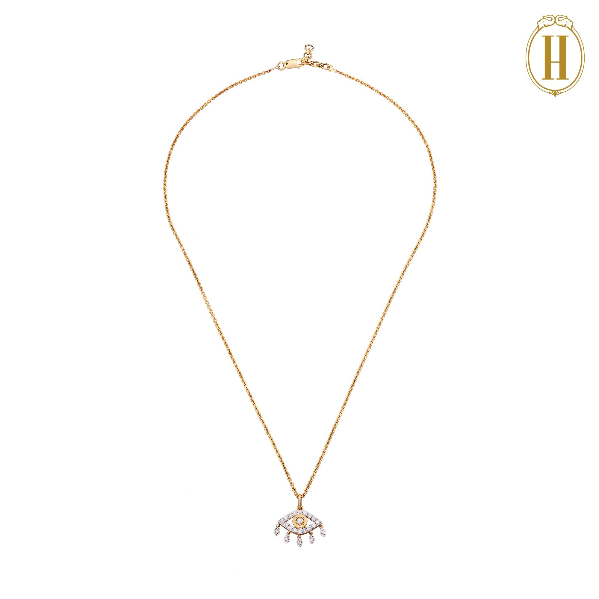 14KT yellow gold necklace with round brilliant-cut diamonds.