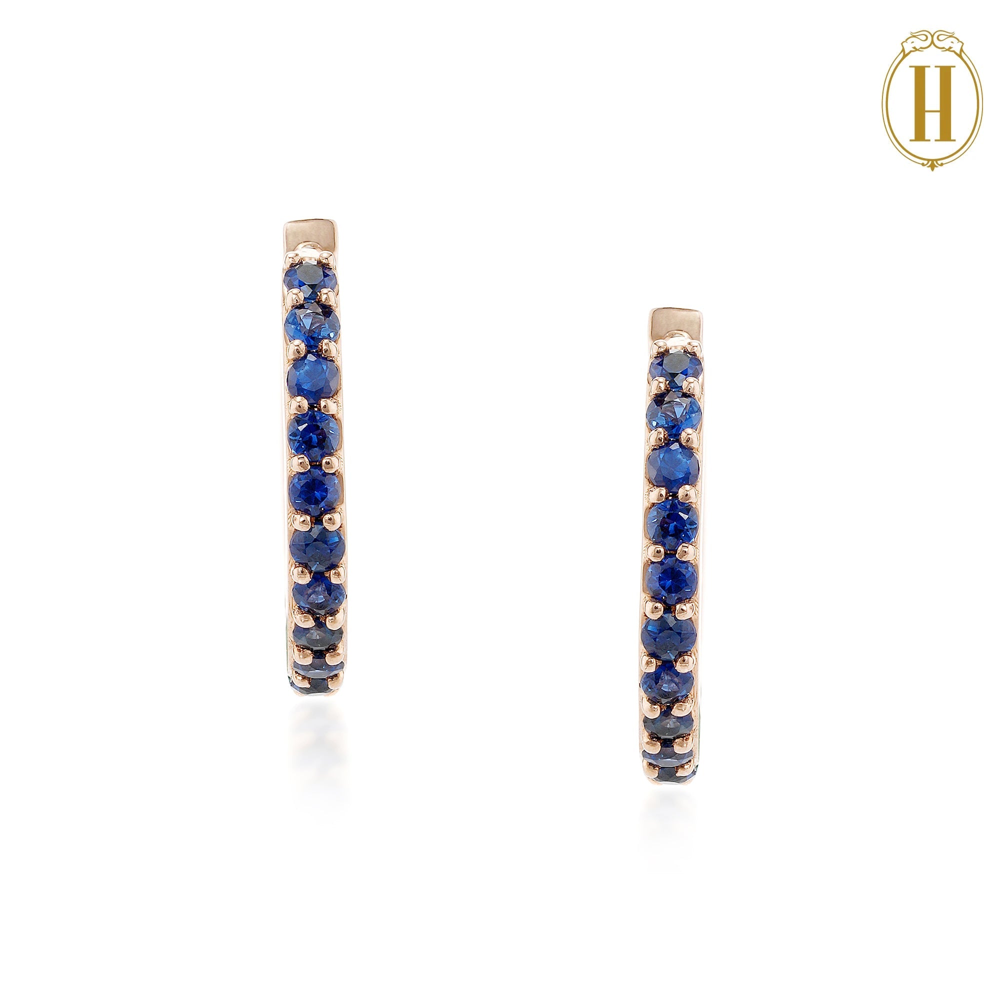 18KT gold hoop earrings with Blue Sapphires